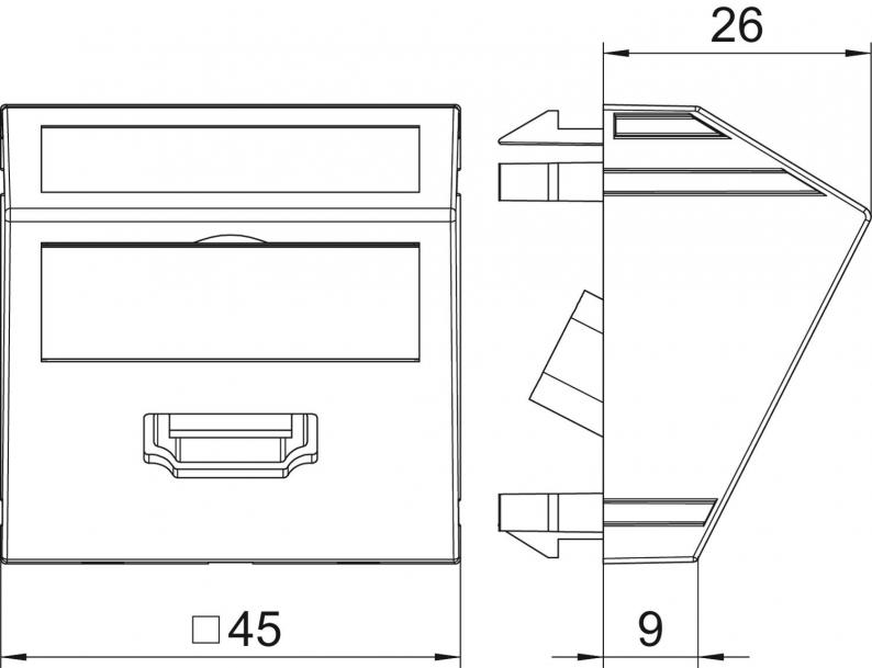 Multimediaträger mit einer HDMI-Anschlussbuchse, Kabelauslass schräg, mit Beschriftungsfeld, HDMI-Buchse mit Schraubanschluss. Trägerplatte mit Rastbefestigung, geeignet für den waagerechten und senkrechten Einbau in die Systemumgebung.
