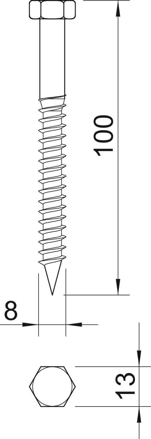 Sechskantschraube nach DIN 571 mit Holzgewinde. Geeignet für Dübel Typen 910.