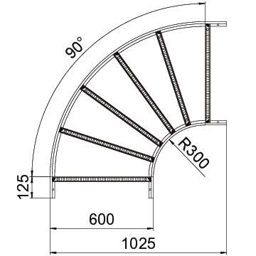 Bogen 90° horizontal mit geschweißter Sprosse für alle Kabelleitertypen mit der Seitenhöhe 60 mm.