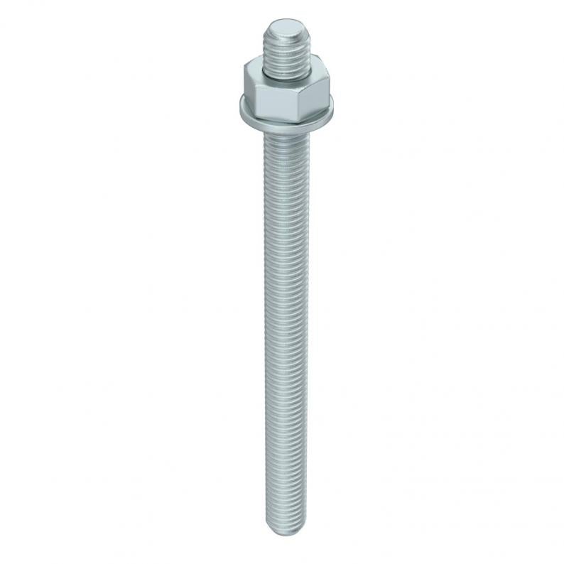 Die Ankerstange FIS A mit Sechskantmutter und Unterlegscheibe ist eine Systemkomponente für die Verwendung mit dem Injektionsmörtel FIS V Plus. Entsprechend der jeweiligen Zulassung des Injektionsmörtels ist die Ankerstange für die Verankerung im Mauerwerk oder Beton geeignet.