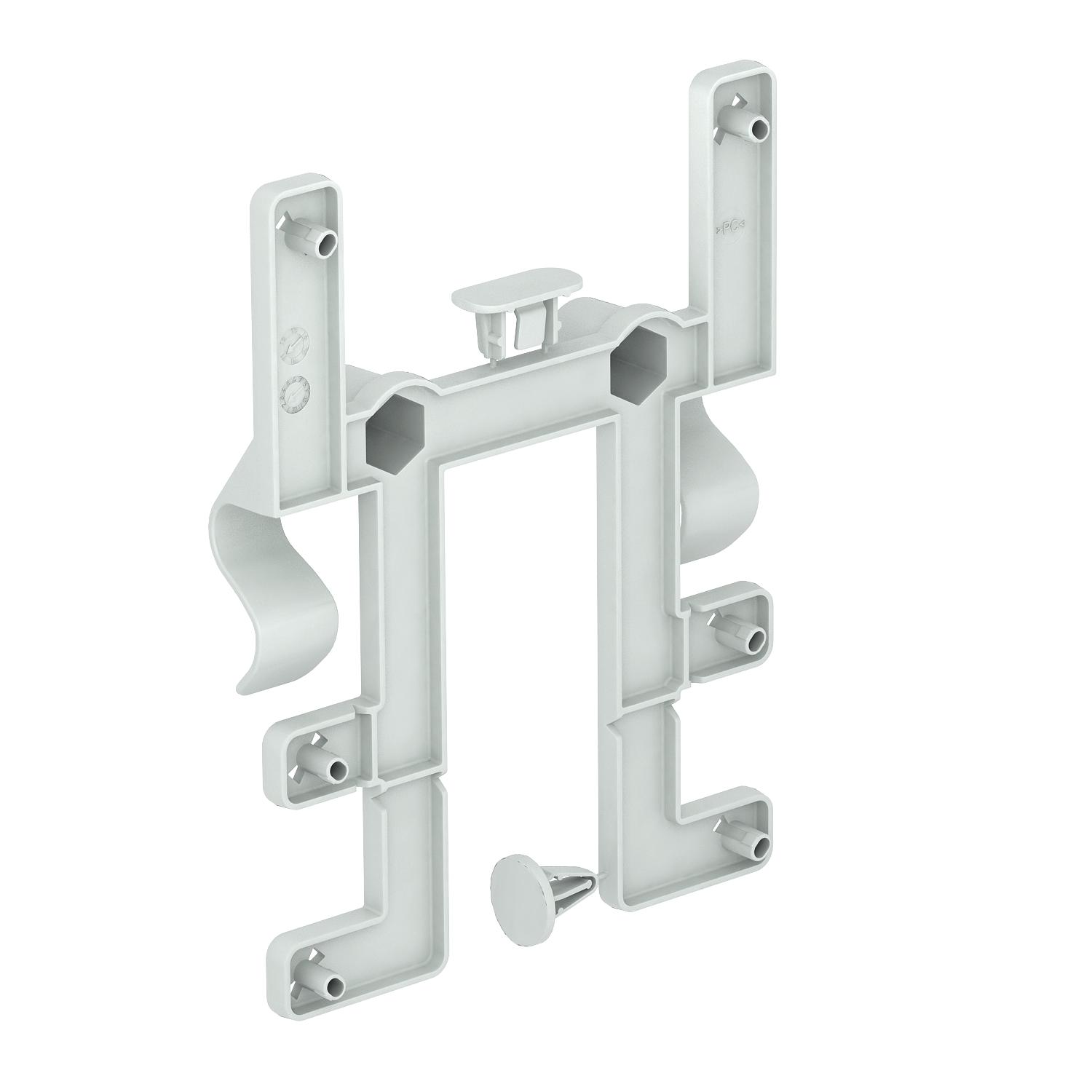 Befestigungselement für Kabelabzweigkästen (T60 und T100), zum werkzeuglosen Montieren an Kabelrinnen. Kabelabzweigkästen beidseitig horizontal oder vertikal montierbar.