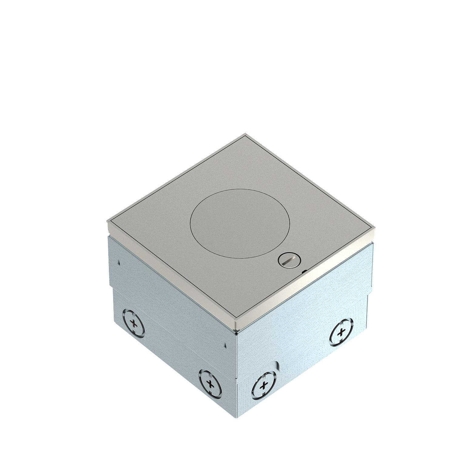 Quadratische Bodensteckdose für den Einsatz in nass gepflegten Hohlböden und Estrichböden im Innenbereich. Leitungsausführung über höhenverstellbaren Tubus. Einbaugehäuse mit vorgeprägten Einführungsöffnungen für Rohre (M20/M25). Oberteil durch 4 Nivellierstützen auf Oberkante Bodenbelag einstellbar. Die Mindesteinbautiefe beträgt 110 mm, der Nivellierbereich + 25 mm.