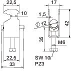 Bügelschelle mit Hammerkopf-Fuß, Kunststoffdruckwanne aus Polypropylen. Zur vertikalen und horizontalen Montage von 1 Einzelkabel an C-Profilschiene. Für Schlitzweite 16 - 17 mm. Mit 1-gängiger Schraube an Druckwanne, universeller Sechskant-Schraubenkopf SW10, mit Schlitz und Kreuzschlitz. Geeignet für Montage im Innen-und Außenbereich. Der Einsatz einer Gegenwanne wird empfohlen.