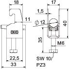 Bügelschelle mit U-Fuß, Kunststoffdruckwanne aus Polypropylen. Zur vertikalen und horizontalen Montage von 1 Einzelkabel an C-Profilschiene. Für Schlitzweite 18 - 22 mm. Mit 1-gängiger Schraube an Druckwanne, universeller Sechskant-Schraubenkopf SW10, mit Schlitz und Kreuzschlitz. Geeignet für Montage im Innen-und Außenbereich. Der Einsatz einer Gegenwanne wird empfohlen.