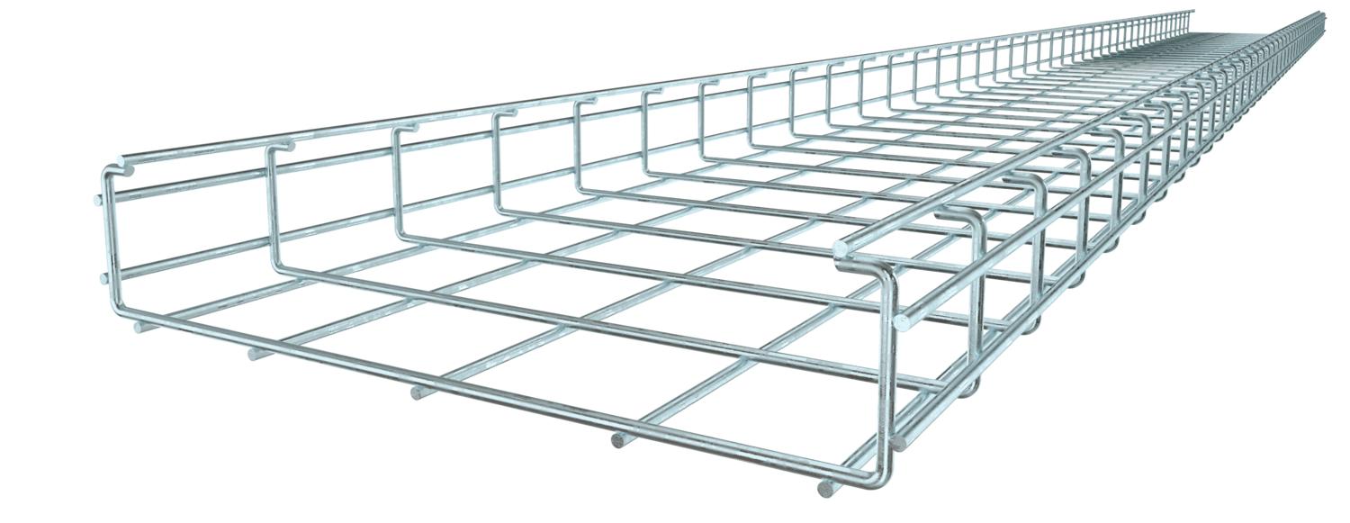 Gitterkabelrinne in C- Form aus punktgeschweißten Stahldrähten in der Seitenhöhe 50mm.