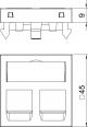 Datentechnikträger mit geradem Auslass und Verschlussschieber zur Aufnahme von zwei Datentechnik-Anschlussmodulen mit RJ45-Buchse. Die Rastbefestigung eignet sich für den waagerechten und senkrechten Einbau in die Systemumgebung. Typ B hat eine Montageöffnung von 19,35/21,55 X 14,85 mm und ist für die direkte Befestigung der Daten-Anschlussmodule in der Montageöffnung ausgelegt.