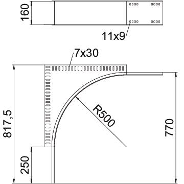 Eckanbaustück für Weitspannkabelrinnen und -leitern mit der Seitenhöhe 160 mm. Inklusive Befestigungsmaterial.