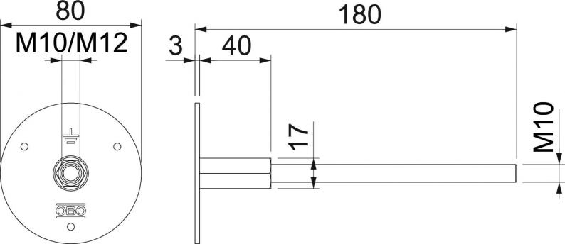 Erdungsfestpunkt mit Anschlussbolzen und Doppelgewinde FT