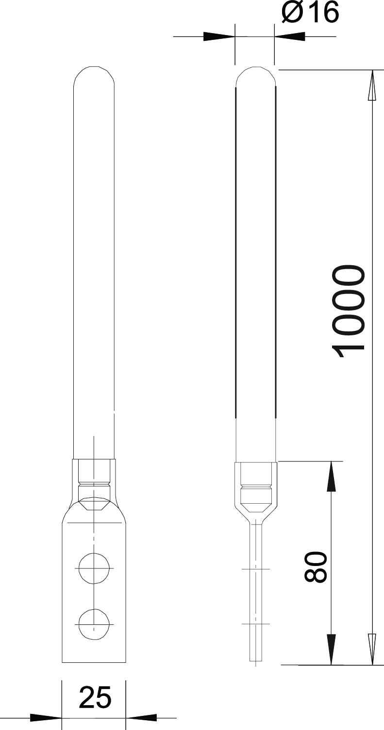 Fang-/Erdeinführungsstange mit Anschlusslappen