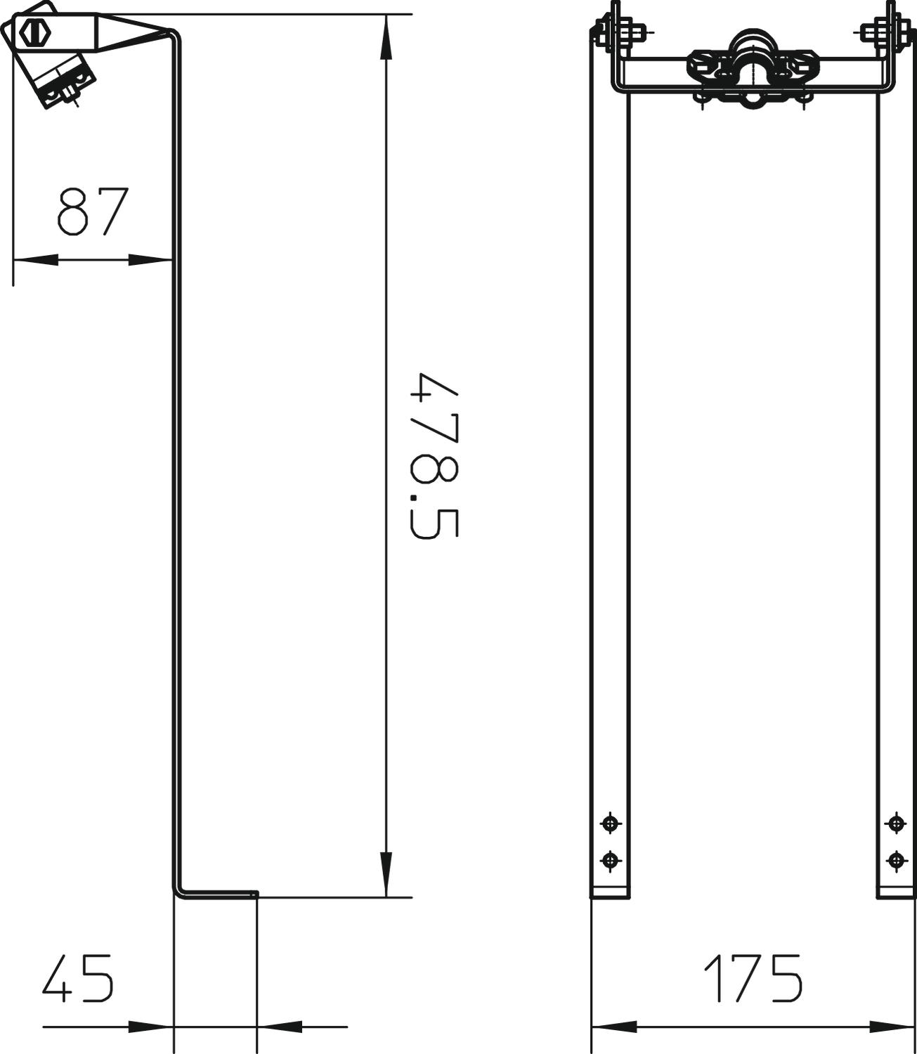 • bei hohen Fangstangen (> 1 m) ist eine zusätzliche Befestigung mit isolierten Abstandhaltern notwendig
