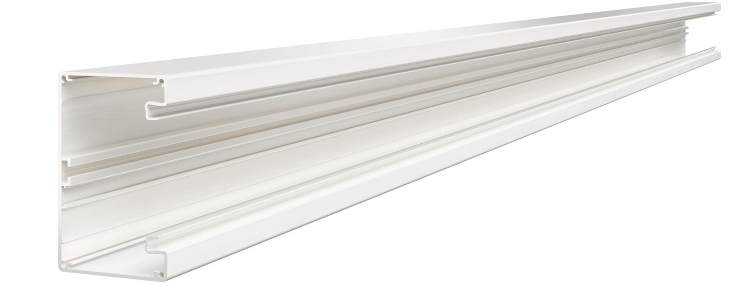 Geräteeinbaukanal ohne Bodenlochung zur direkten Wandmontage oder an Konsolen geeignet. Überlängen bis 6000 mm von Kanalunterteilen und -oberteilen sowie andere RAL-Farben können auf Anfrage realisiert werden. Die Sichtflächen der Geräteeinbaukanäle sind foliert.