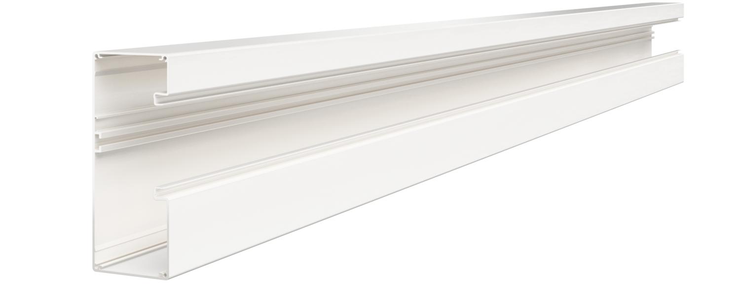 Geräteeinbaukanal ohne Bodenlochung zur direkten Wandmontage oder an Konsolen geeignet. Überlängen bis 6000 mm von Kanalunterteilen und -oberteilen sowie andere RAL-Farben können auf Anfrage realisiert werden. Die Sichtflächen der Geräteeinbaukanäle sind foliert.