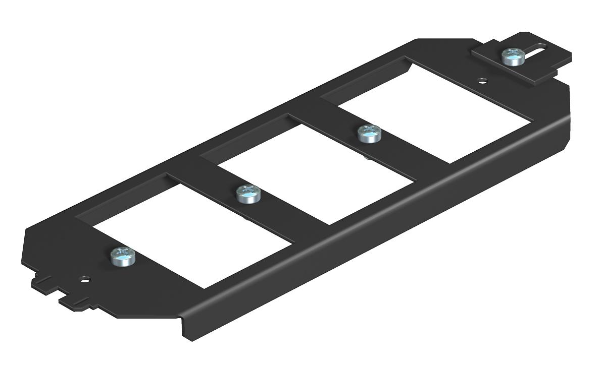 Geräteeinsatz mit Griffbügel, 3-zügig, für den Einbau des Montageträger MT9. Es können 3 Abdeckplatten der Bauform APMT5 installiert werden