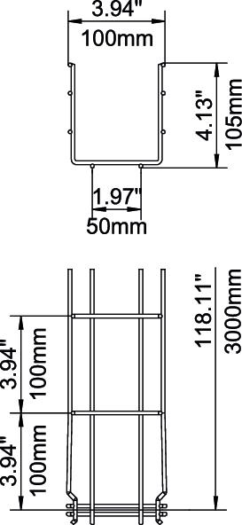 Für die Gitterrinne werden keine zusätzlichen Verbinderbauteile benötigt, sie wird einfach inneinandergesteckt. Die Maschenweite beträgt 50 x 100 mm.