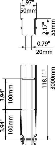 Für die Gitterrinne werden keine zusätzlichen Verbinderbauteile benötigt, sie wird einfach ineinandergesteckt. Die Maschenweite beträgt 50 x 100 mm (Ausnahme GRM 55/50 = 20 x 100 mm).