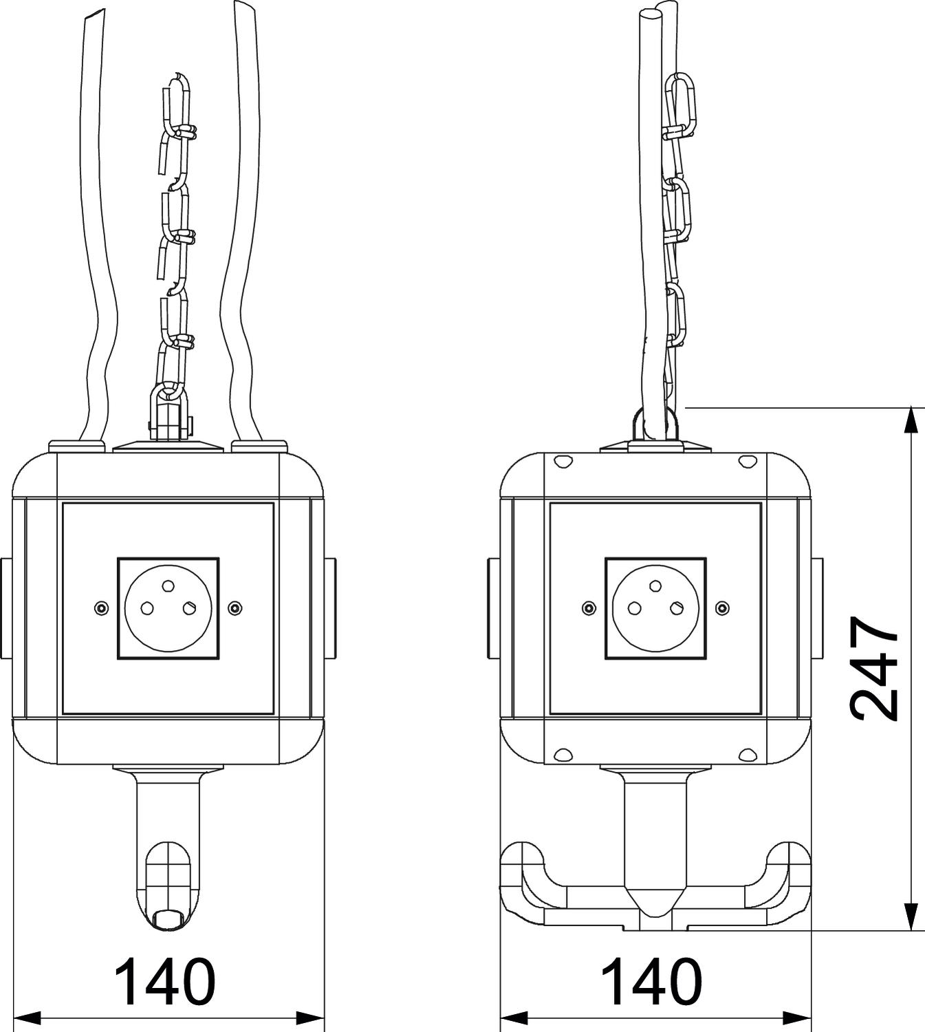 Gehäuse bestückt und vorverdrahtet mit Aufhängeöse, Griffhaken und 4 Abdeckplatten.