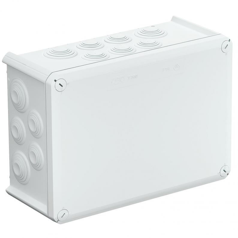 Kabelabzweigkasten gemäß DIN EN 60670. Flammwidrig nach DIN EN 60695-2-11, Prüftemperatur 650°C. Schlagfestigkeit IK05 gemäß DIN EN 50102.