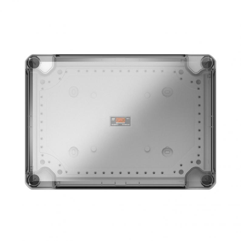 Kabelabzweigkasten zum Verbinden von Kabeln und Leitungen im Innen- und Außenbereich. Rechteckige Form mit Ausschlageinführungen. Geeignet für die Wand-/ Deckenmontage mit der Möglichkeit zur Außenbefestigung, Innenbefestigung oder Montage über die Eckdome. Besonders schlagfest mit IK08. Transparenter Deckel mit Schnellverschluss, plombierbar. Hergestellt aus halogenfreien und UV-resistenten Materialien.