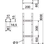 Kabelleiter mit gelochtem Seitenholm in der Seitenhöhe 60 mm mit eingenieteten, nach oben offenen C-Profil-Sprossen (Ausführung VS).