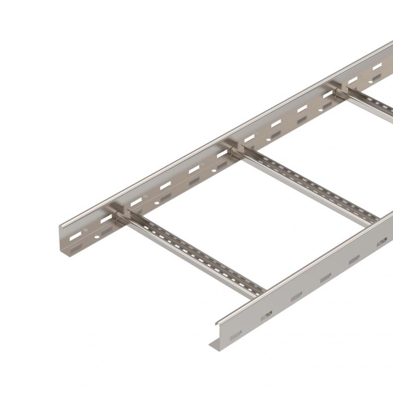 Kabelleiter mit gelochtem Seitenholm in der Seitenhöhe 60 mm mit eingenieteten, nach oben offenen C-Profil-Sprossen (Ausführung VS).