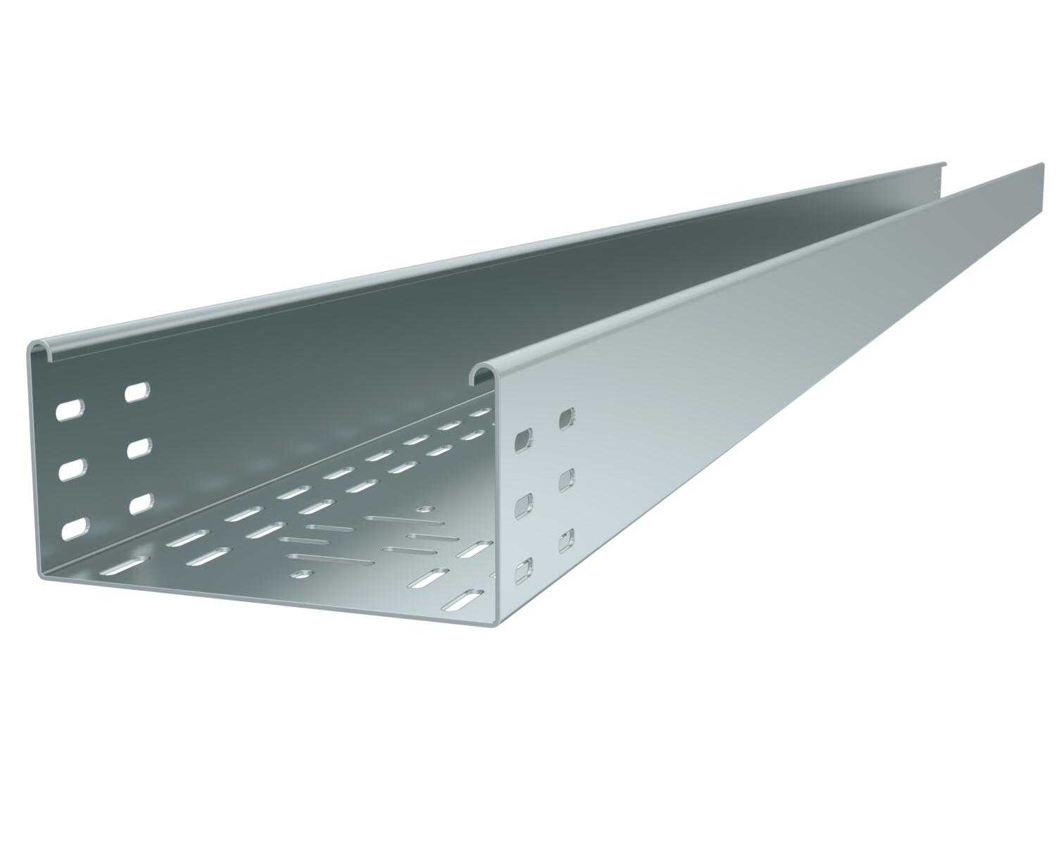 Schweres, begehbares Kabelrinnen-System BKRS mit Bodenlochung, in 100 mm Seitenhöhe.