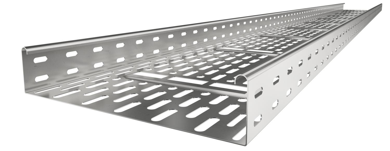 Durchlässiges Kabelrinnen-System nach VdS Richtlinie 2092 mit 30% Lochanteil zum Einsatz unter Sprinkleranlagen.