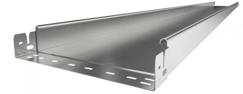Ungelochte Kabelrinne mit integriertem Schnellbefestigungssystem. Die Nutzlänge der Kabelrinne beträgt 3.000 mm.