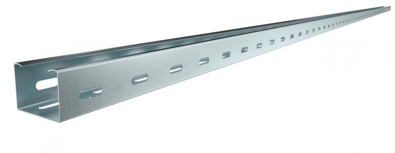 Kabelrinne mit durchgängiger Boden- und Seitenperforation sowie Mittellochung (Ø11 mm) im Boden für zusätzliche Befestigungen.