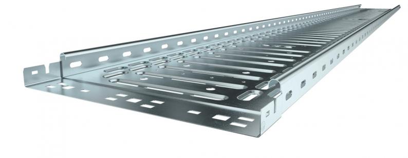 Kabelrinne mit integriertem Schnellbefestigungssystem. Die Nutzlänge der Kabelrinne beträgt 3.000 mm.