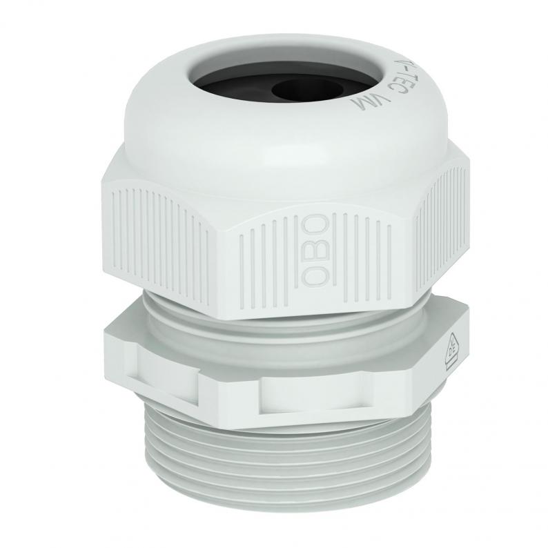 Kabelverschraubung mit metrischem Anschlussgewinde in Hutmutterbauart, für Kabelabzweigkästen, Gehäuse, Verteilerschränke im privaten und industriellen Bereich. Mit Zugentlastung und integrierter Dichtlippe, geprüft nach DIN EN 62444. Schutzklasse IP68. Einsetzbar von -20°C bis +65°C.