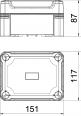 Kabelabzweigkasten zum Verbinden von Kabeln und Leitungen im Innen- und Außenbereich. Rechteckige Form ohne Einführungen. Geeignet für die Wand-/ Deckenmontage mit der Möglichkeit zur Außenbefestigung, Innenbefestigung oder Montage über die Eckdome. Besonders schlagfest mit IK09. Transparenter Deckel mit Schnellverschluss, plombierbar. Hergestellt aus halogenfreien und UV-resistenten Materialien. Kabelabzweigkasten gemäß DIN EN 60670. Schlagfestigkeit IK09 gemäß DIN EN 50102. Schutzart IP67 gemäß DIN EN 60529.