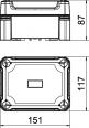 Kabelabzweigkasten gemäß DIN EN 60670. Schlagfestigkeit IK09 gemäß DIN EN 50102. Schutzart IP67 gemäß DIN EN 60529.