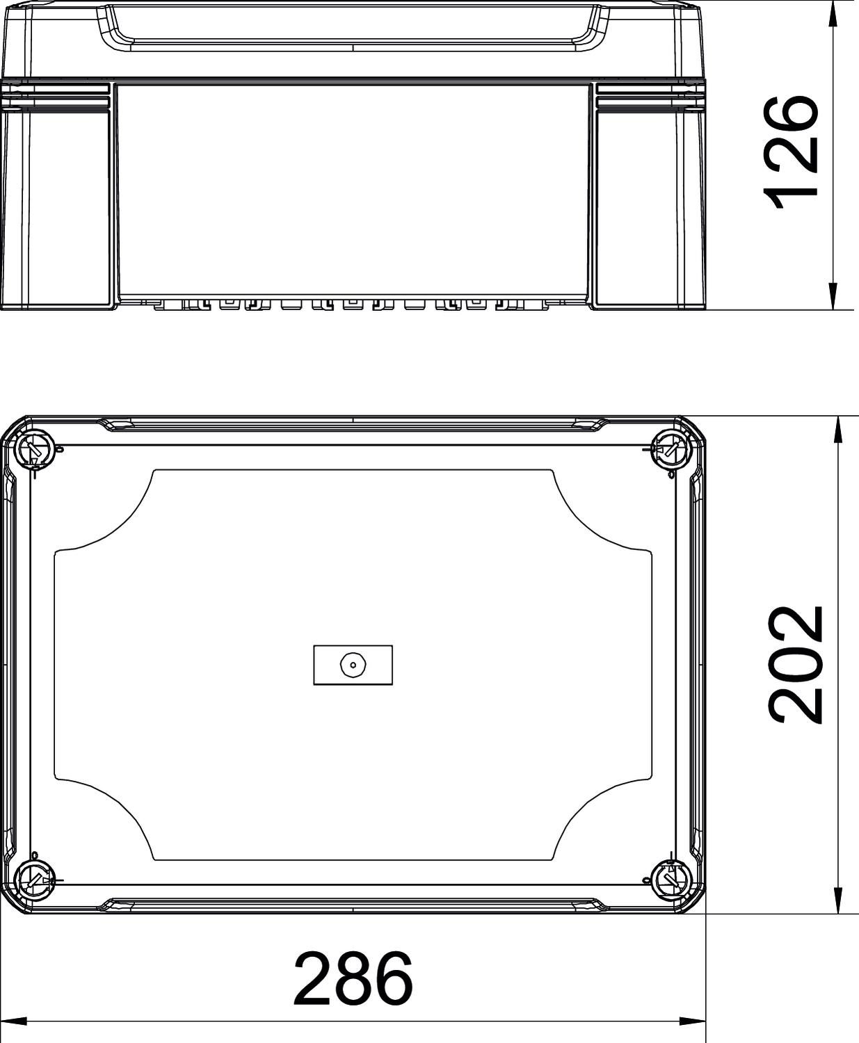 Kabelabzweigkasten mit Hutprofilschiene zum Verbinden von Kabeln und Leitungen im Innen- und Außenbereich. Rechteckige Form ohne Einführungen. Geeignet für die Wand-/ Deckenmontage mit der Möglichkeit zur Außenbefestigung, Innenbefestigung oder Montage über die Eckdome. Besonders schlagfest mit IK08. Transparenter Deckel mit Schnellverschluss, plombierbar. Hergestellt aus halogenfreien und UV-resistenten Materialien.