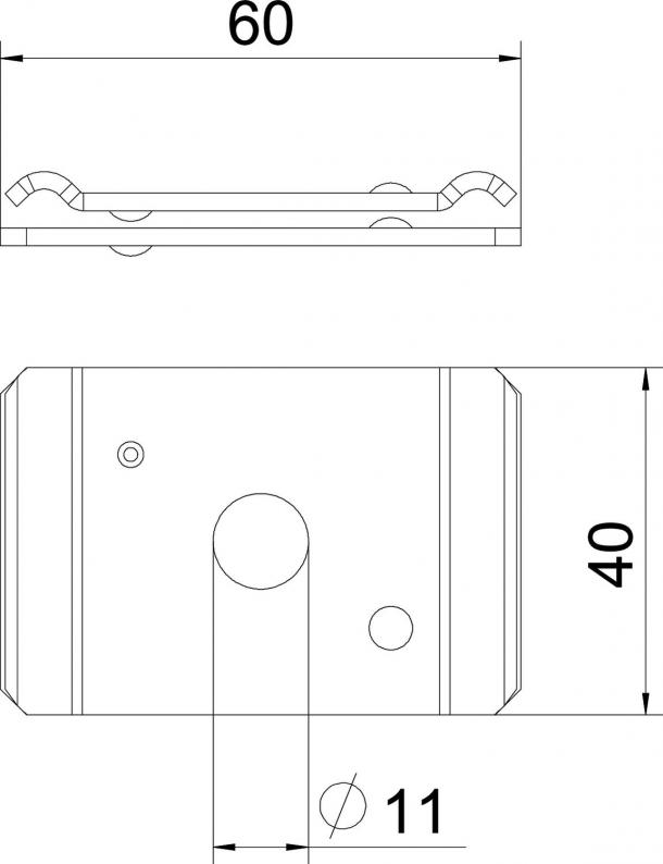 Mittenabhängung für Gitterrinnen in zweiteiliger Ausführung.