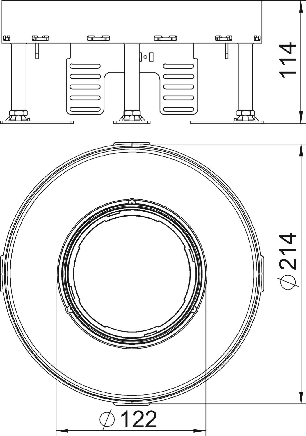 Nivellierbare Schwerlastkassette mit Tubus mit einer Belastungsklasse von 2-20 kN, 2-zügig. Es können 2 Abdeckplatten APMT2 installiert werden. Für den Einbau von 2 Universalträgern UT3 für 4 Einzel-Installationsgeräte mit Tragering/Tragebügel oder 6 Modul 45-Geräte. Der Tubus ist nicht im Lieferumfang enthalten.