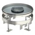 Nivellierbare runde Schwerlastkassette, 3-zügig, für Tubus der Nenngröße 9. Für den Einbau in Kanalsystemen, Doppel-und Hohlböden in trocken -oder Nass gepflegten Fußböden im Innenbereich. Belastungsklasse 2 bis 20 kN. Es können 3 Abdeckplatten APMT5 eingebaut werden.