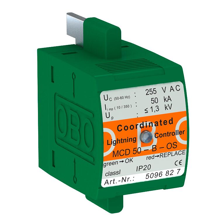 Kombiableiter, Blitzstromableiter Typ 1+2 Oberteil mit optischer Anzeige.