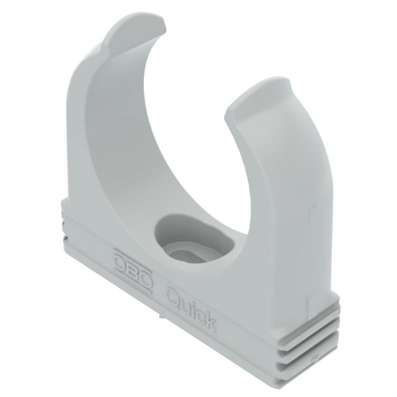 Aufputzschelle zur Aufnahme von metrischen Stahlpanzerrohren, leichten und schweren Isolierrohren sowie Elektroinstallationsrohr Quick-Pipe. Universelle Befestigungsmöglichkeiten an Wand und Decke im Innen- und geschützten Außenbereich. Mit Langloch zum seitlichen Ausrichten bei Montage mit Holzschraube oder Schlagdübel. Werkzeuglose Rohrmontage. Aneinander reihbar auch mit OBO Multi-Quick- oder proQuick-Schelle. Größe M16 - M32 kann auf Gewinde M6 geschraubt werden. Befestigungsabstand 50 - 60 cm, max. Auszugswerte F bei 20° C Raumtemperatur siehe Tabelle.