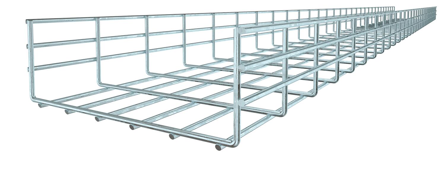 Gitterrinne aus punktgeschweißten Stahldrähten mit der Seitenhöhe 105 mm.