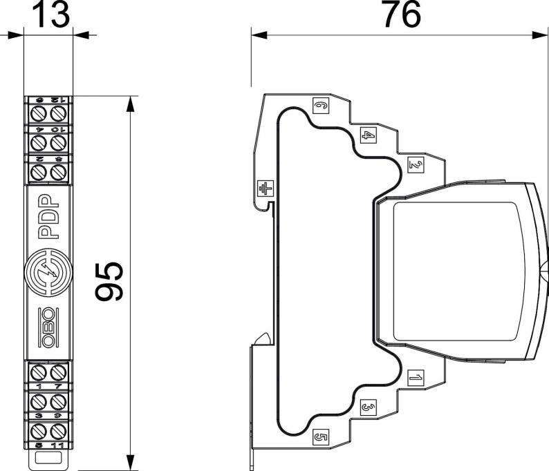 | Erdung über: | Anschlussleitung/Hutschiene |