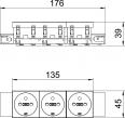 Erdungsstift-Steckdose mit seitlichem Anschluss 3-fach 0°, mit erhöhtem Berührungsschutz, mit Steckklemmen, 2-polig, 16 A, 250 V~, mit Verbindungsklemmen nach IEC 60884-1, geeignet für den Einbau in Geräteeinbau-Kanalsysteme Rapid 45.