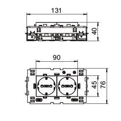 Steckdose 0°, Connect 80, Schutzkontakt, 2-fach