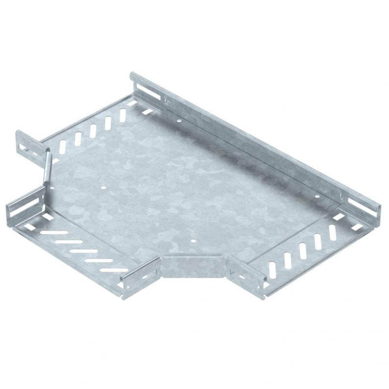 T-Stück zum Erstellen einer horizontalen Abzweigung, Formteil für rast- und schraubbare Kabelrinnen Seitenhöhe 35 mm. Schraubverbindung mit Flachrundschrauben FRS und Kombimuttern M6. Einsetzbar im Innen- und Außenbereich. Befestigungsmaterial muss separat bestellt werden.