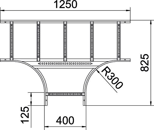T-Stück, horizontal, mit geschweißter Sprosse für alle Kabelleitertypen mit der Seitenhöhe 60 mm.
