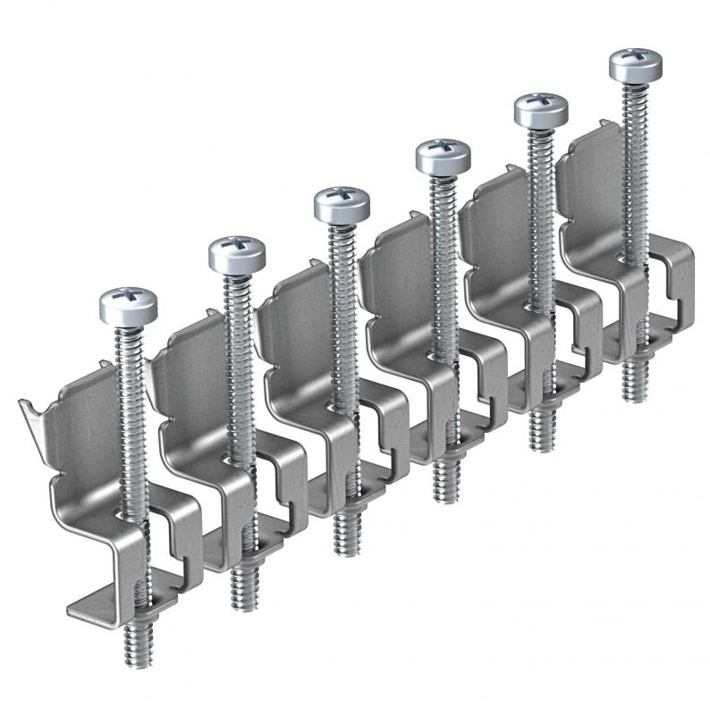 Universalbefestigung für runde Geräteeinsätze und Zugdoseneinsätze in Kanalsystemen, Doppel- und Hohlboden sowie für eckige Geräteeinsätze und Zugdoseneinsätze in Kanalsystemen mit 6 Befestigungspunkten. Ersatzteil.