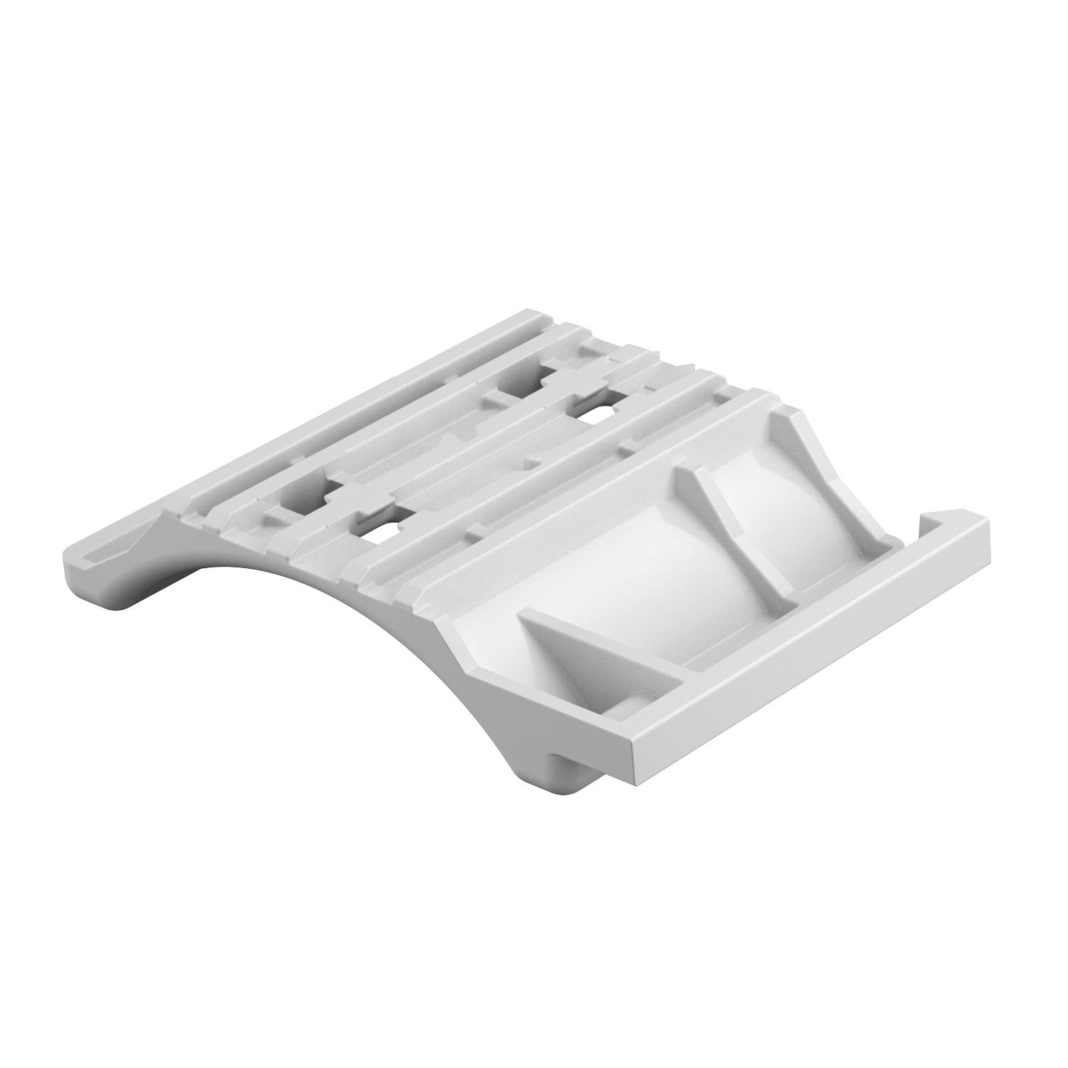 Unabhängig von der Schiene, universell einsetzbar durch Aufschieben auf einen Schenkel der Bügelschelle. Durch eine intelligente Kontur auf der Rückseite, kombinierbar zur Doppelwanne. Nachträgliche Installation ohne Demontage der Bügelschelle möglich.