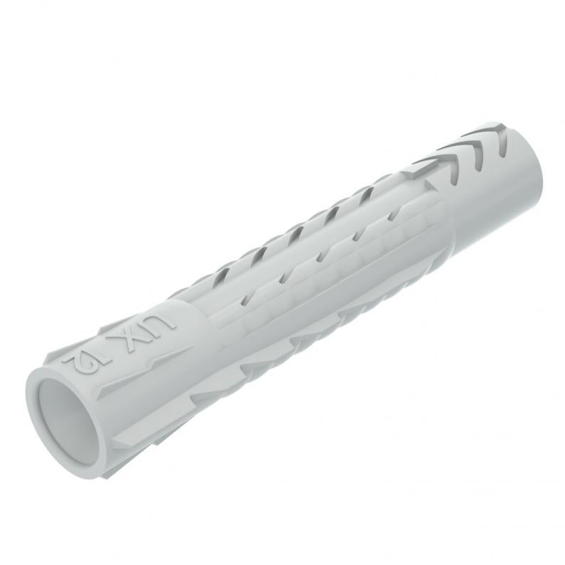 Universeller Nylondübel zur Befestigung leichter Bauteile an Wänden und Decken. Geeignet für Beton, Kalkstein, Vollziegel, Hohlziegel und Porenbeton. Die angegebenen Belastungswerte gelten für Holzschrauben mit dem angegebenen Durchmesser.