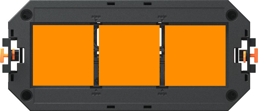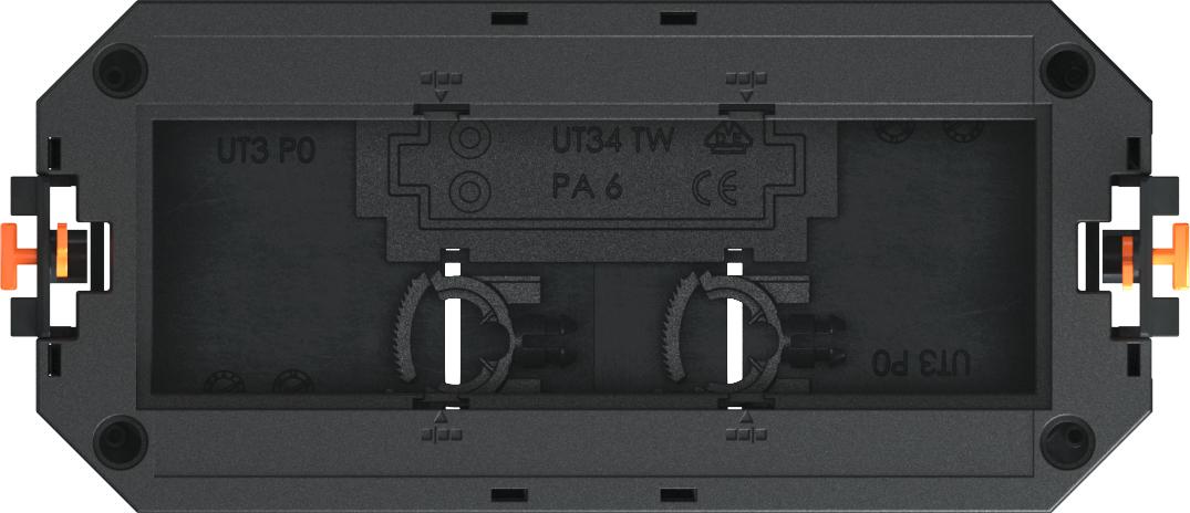 Universalträger mit zwei Zugentlastungen, Montagebrücken, Trennwand und Abdeckplatte UT3 P3 für Einbau von 3 Modul 45-Geräten in Geräteeinbaueinheiten der Nenngrößen 2, R4, 4 und R7.