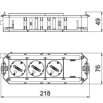 Der anschlussfertige Universalträger UTC4 verfügt über 3 vorinstallierte 33°-Schutzkontaktsteckdosen in weiß und eine Blindabdeckung für den nachträglichen Einbau von einem Installationsgerät der Modul45.