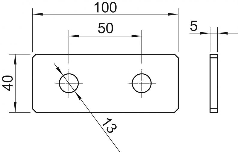Verbindungsplatte mit 2 Löchern zur Längsverbindung von Profilschienen 41 x 41 mm und 41 x 21 mm.